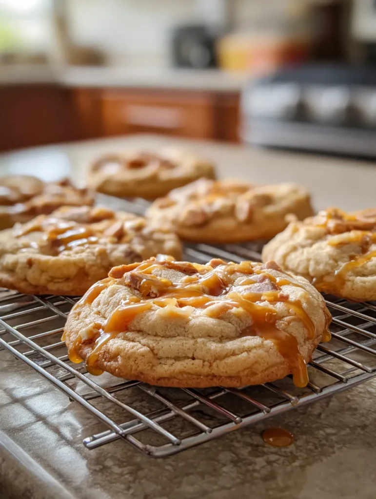 Pro Tip: For that bakery look, press a few extra caramel and toffee pieces onto the tops of each cookie right before baking.