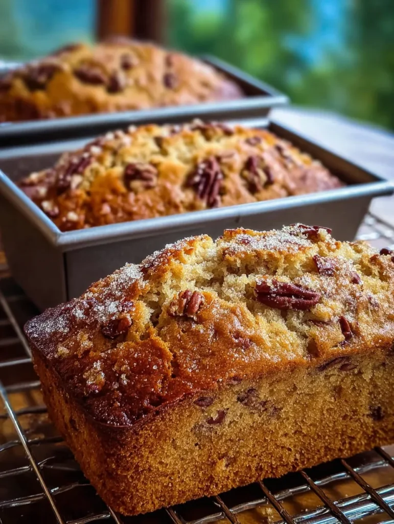 🍎 Apple Cinnamon Pecan Bread: Fold in 1 cup finely chopped apples for extra moisture and sweetness.
