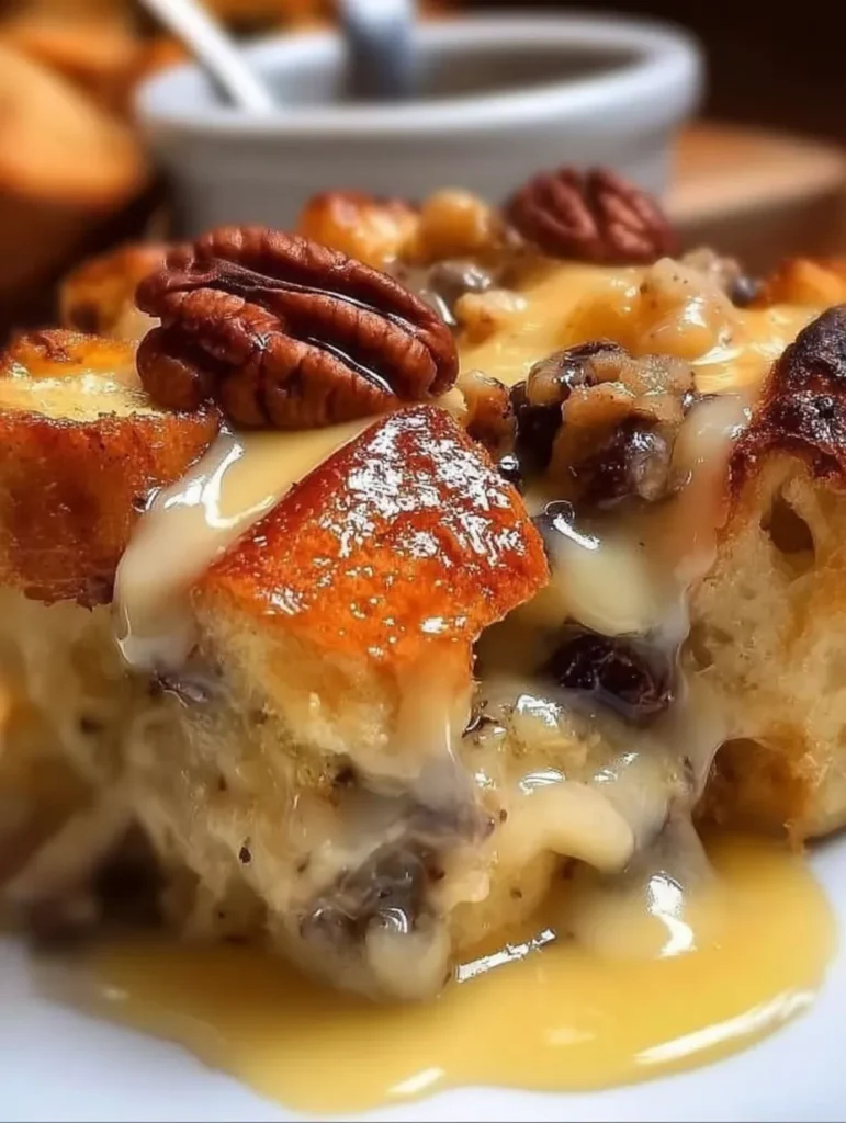 Let’s be honest — the sauce is where the magic happens. It’s buttery, sweet, and just a little bit sinful. The bourbon adds warmth and depth, perfectly complementing the sweet vanilla custard.