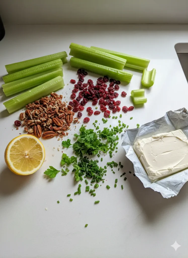 Cleaning is another step you don’t want to rush. Celery tends to trap dirt, especially near the base. Rinse thoroughly under cold water and pat dry before cutting into 3–4 inch pieces. Dry celery helps the filling stick better, which makes the final presentation cleaner and more appealing.