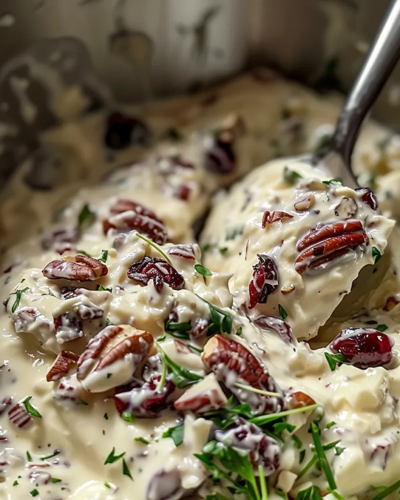 Once the base is smooth, fold in the chopped cranberries, pecans, parsley, and chives. Stir gently but thoroughly, making sure everything is evenly distributed. You want every scoop of filling to have a bit of everything—sweet, nutty, and herbaceous.