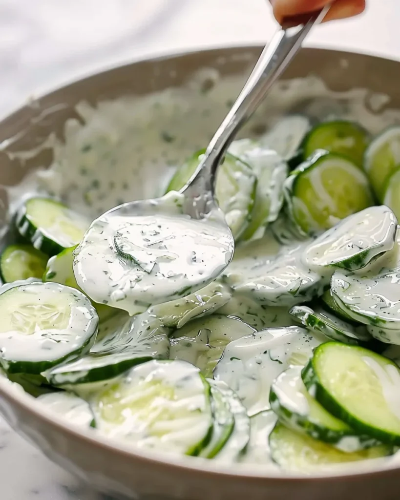 If you’re planning to make it ahead of time, consider keeping the dressing separate and mixing it with the cucumbers closer to serving time. This helps maintain that perfect texture.