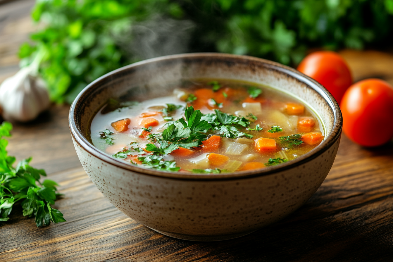 • Fresh vegetables: Carrots, onions, celery, tomatoes, potatoes, and leafy greens add depth and nutrition.