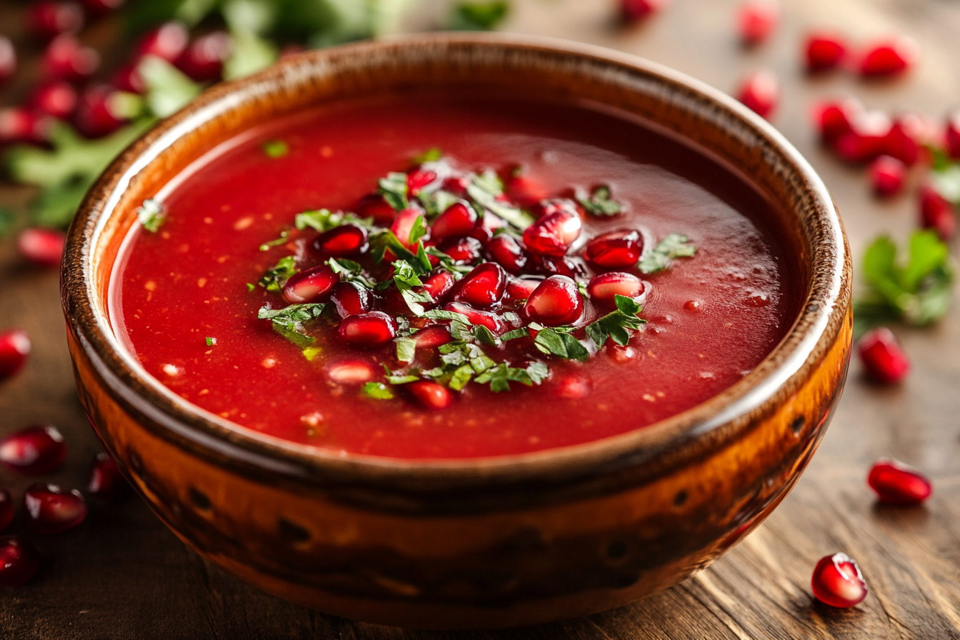 This bold fusion of sweet, sour, and savory makes pomegranate topped soup a must-try dish for anyone who loves complex flavors and nutritious meals.