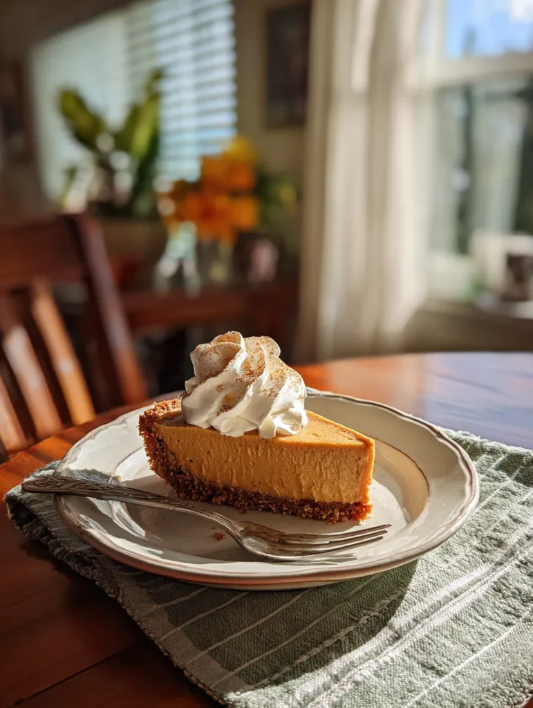 Slice into this creamy pumpkin perfection and serve chilled. Top with whipped cream or a dusting of nutmeg for extra flair. (⏱️ 5 minutes)