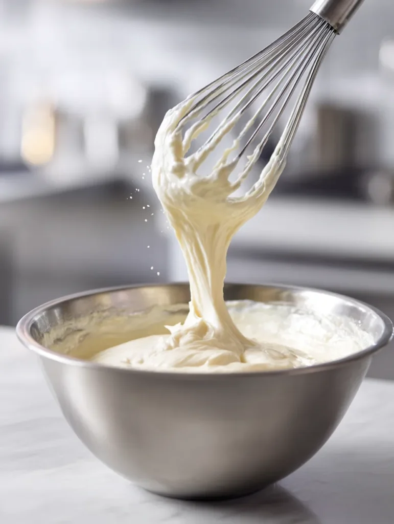 4️⃣ Beat in powdered sugar and vanilla until smooth and creamy. If it thickens too much, add a teaspoon of milk at a time until you reach the desired consistency.