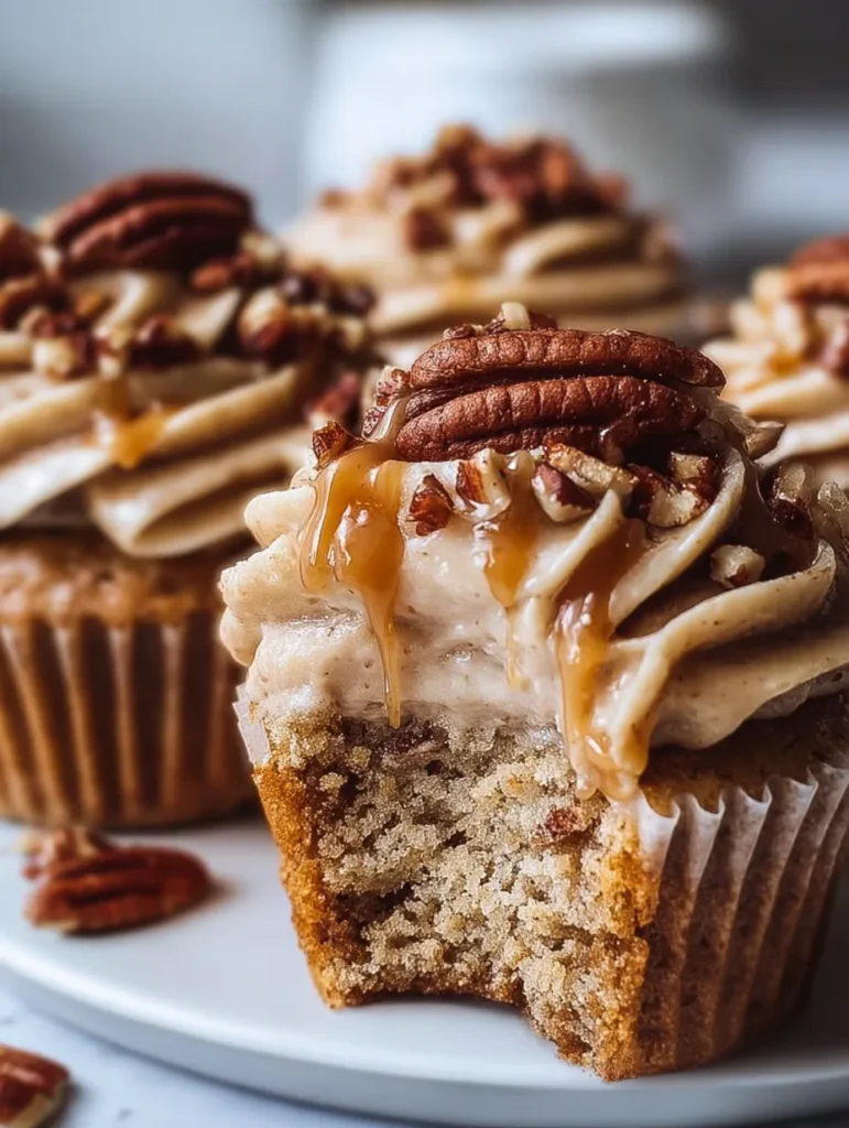 For that picture-perfect finish, top your cupcakes with a pecan half, a dusting of brown sugar, or a drizzle of caramel right before presenting them.