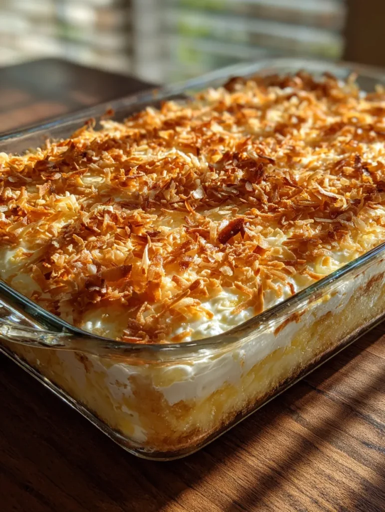 🎂 Crowd-Pleasing Presentation: With its snowy coconut topping and golden pineapple filling, it looks just as dreamy as it tastes.