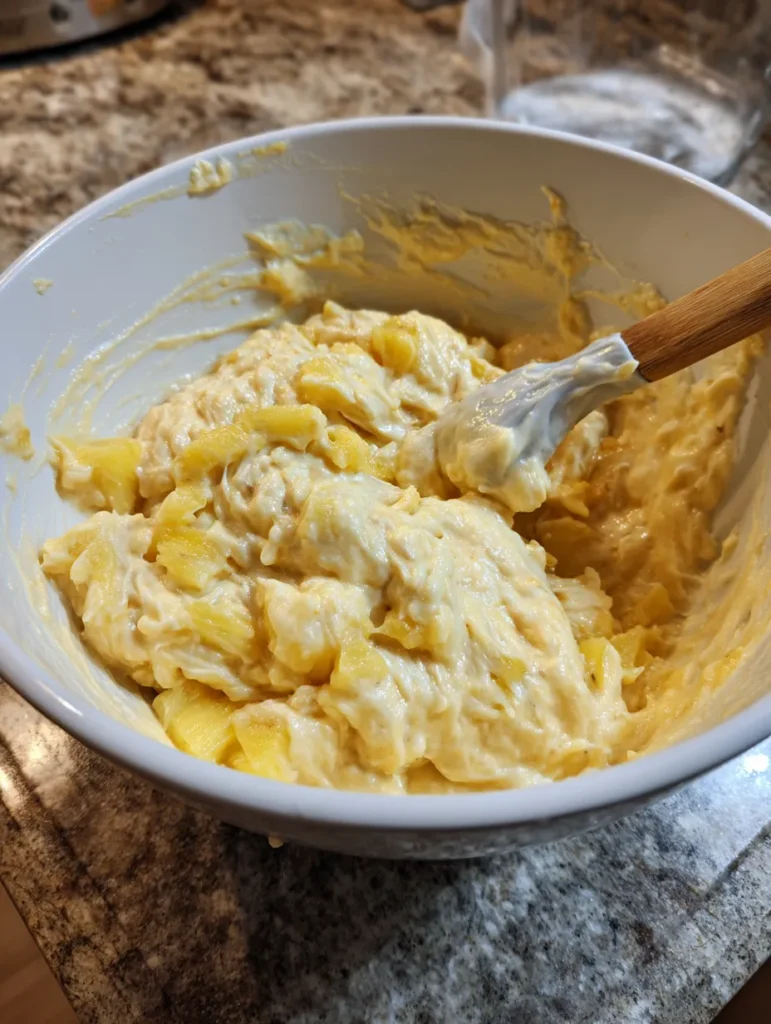 👉 Tip: Drain the pineapple thoroughly—too much liquid will make the cake dense and soggy. You want that bright pineapple flavor without excess moisture.
