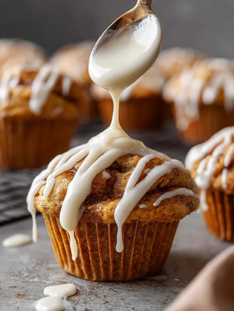 - Whisk powdered sugar, milk, and vanilla extract to make the glaze. Drizzle over cooled muffins before serving.
