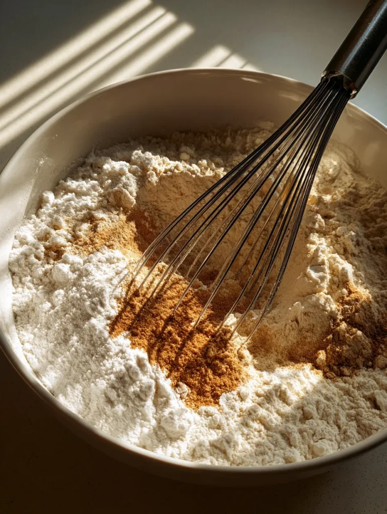 - In a large bowl, whisk together flour, granulated sugar, brown sugar, baking powder, baking soda, salt, cinnamon, nutmeg, and cloves.