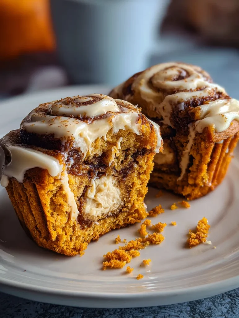 4. Vegan Pumpkin Cinnamon Roll Muffins 🌱