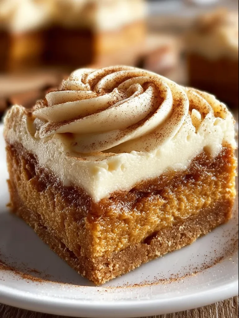 Think of this dessert as the fall version of a gooey butter cake—only with a pumpkin twist that makes it seasonal, festive, and impossible to resist.