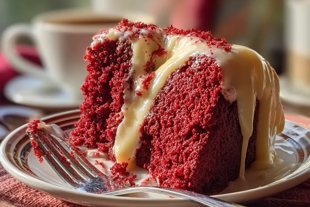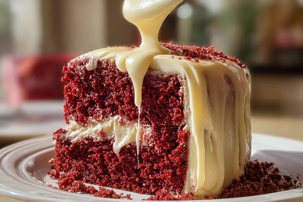 Add crushed peppermint candies to the icing for a Christmas twist, or top with heart-shaped sprinkles for Valentine’s Day. The red hue of the cake already makes it a natural fit for festive celebrations.