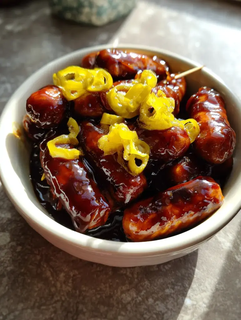 The result is a rich, sticky glaze that clings to each sausage like a warm, glossy hug. It’s the kind of dish that’s so flavorful, it doesn’t need a dip or even a plate. Just toothpicks, a hungry crowd, and maybe some napkins.